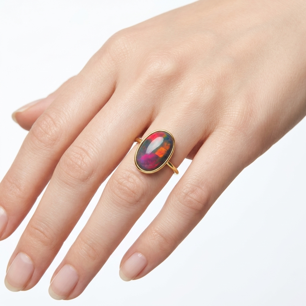 Pierścionek z czarnym opalem etiopskim 3.10 ct